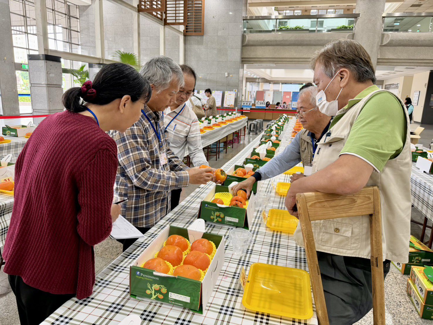 台中市政府農業局為推廣中市優質農特產品,提升甜柿品質及消費者食用安全,輔導和平區農會於今(18)日在台中市政府陽明市政大樓1樓大廳,舉辦「114年度台中市優質甜柿果品評鑑活動」,計有60組產銷班農民報名參賽,由和平區陳煌明勇奪冠軍,成為今年度的甜柿達人。