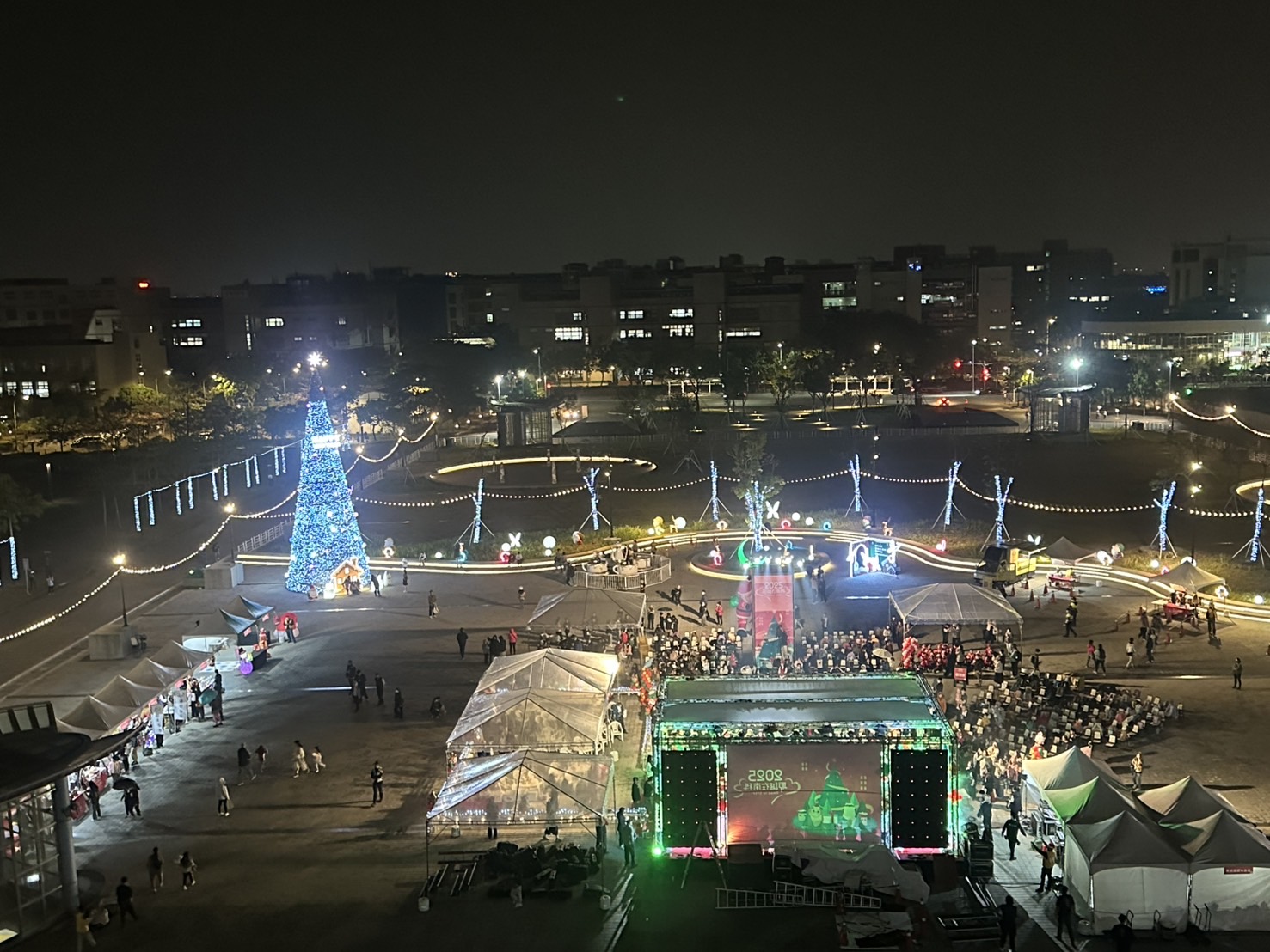 晚會安排闖關遊戲與小朋友互動,讓大家理解友善生態環境的重要性,並提供多種在地特色美食,用一口又一口的幸福溫暖你我的心。表演節目豐富多元,包括南科實中國小部管樂團、合唱團及直笛團的音樂饗宴,園區企業聯華電子半調子樂團的精彩演出,以及壓軸的極限火舞團熱力四射火舞秀,為南科園區注入年節新氣象。場邊還有專為親子設計的遊樂設施——飛羽旋轉杯杯,轉出大家甜甜的笑容與幸福滋味,讓大小朋友一起同樂,在歡笑聲中留下難忘的耶誕回憶。