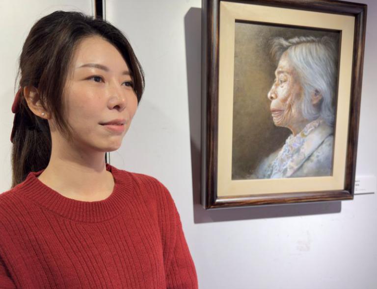 ▲賴彥希畫的唯妙唯巧的奶奶瑾瑜。(圖/記者蔣彤雲攝)