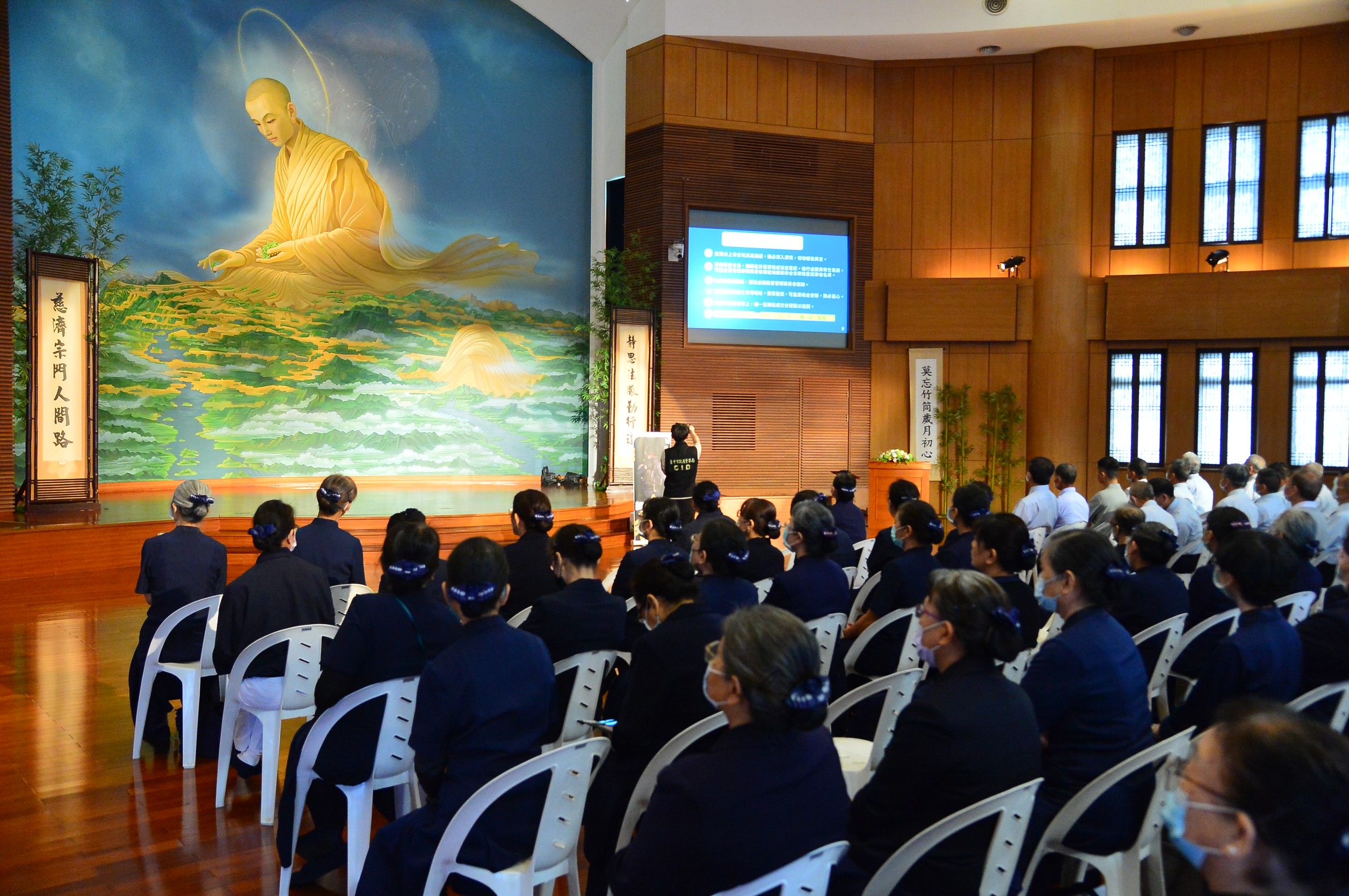 豐原警分局長謝建國為全面加強防詐警覺,特指派偵查隊於4月12日10時許,在豐原靜思堂舉辦慈濟中區第五聯區慈誠委員精進半日課程中,特舉辦「全民金融防詐講座」。