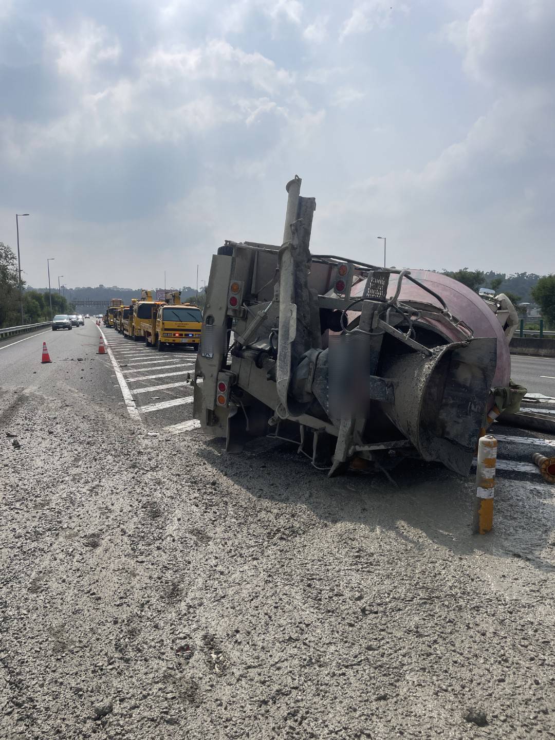 【Lai傳媒、記者爆料網/周庭慶/嘉義報導】國道3號北向291.7公里嘉義竹崎路段今(8)日上午發生預拌混凝土車翻覆事故!中午11時14分,47歲黃姓男子駕駛預拌混凝土車行經該路段,疑因機件故障失控後自翻肇事,造成黃姓男子輕傷未送醫。現場於13時9分排除恢復通車。