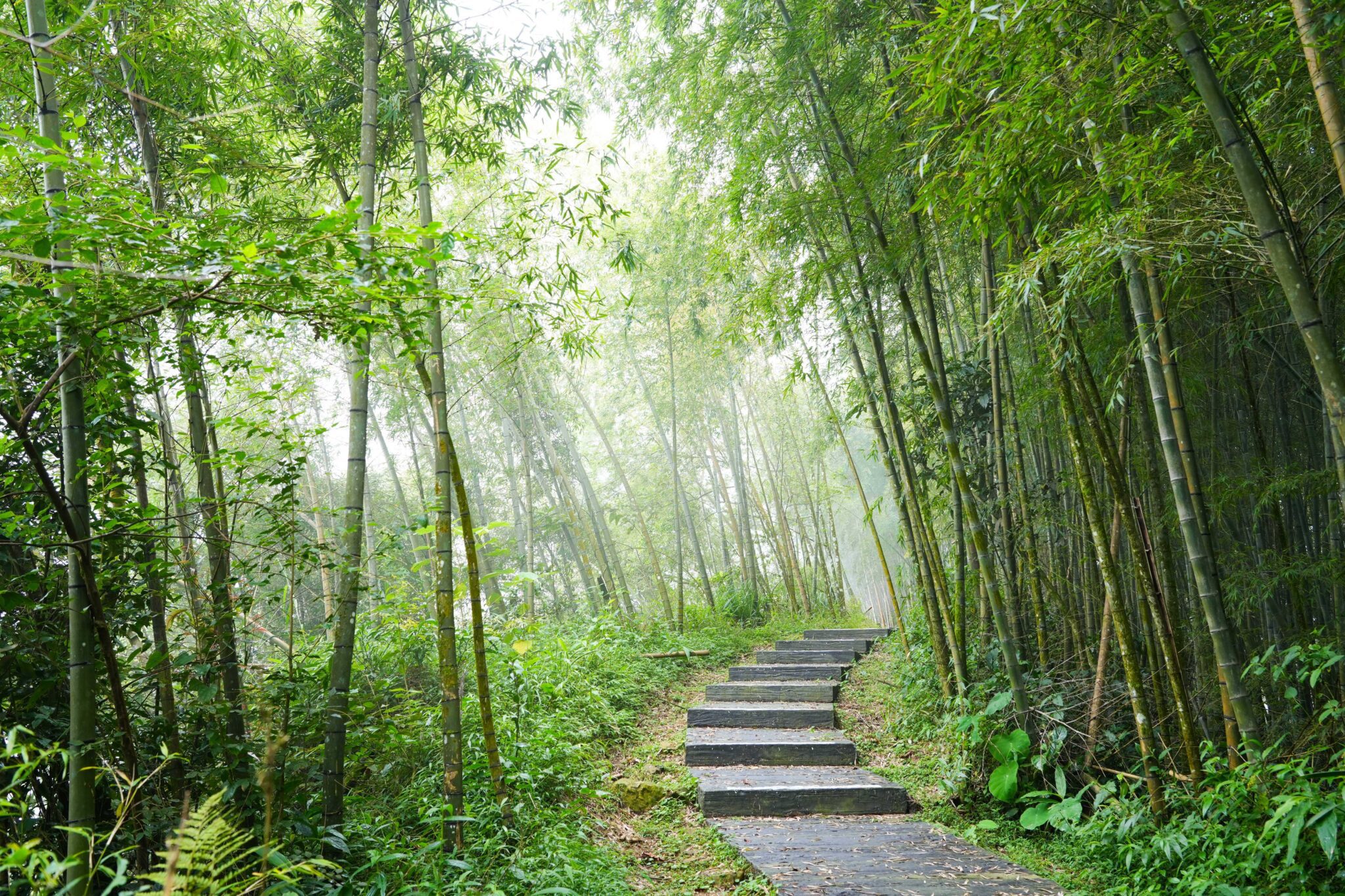 從飯店出發,步行幾分鐘便能抵達「龍銀山步道」,這條約874公尺的步道穿梭在竹林與杉木之間,沿途設有觀景亭與休憩平台,旅人可在此停下腳步,看霧氣在山谷間流動,聽林間風聲與鳥鳴交織。
