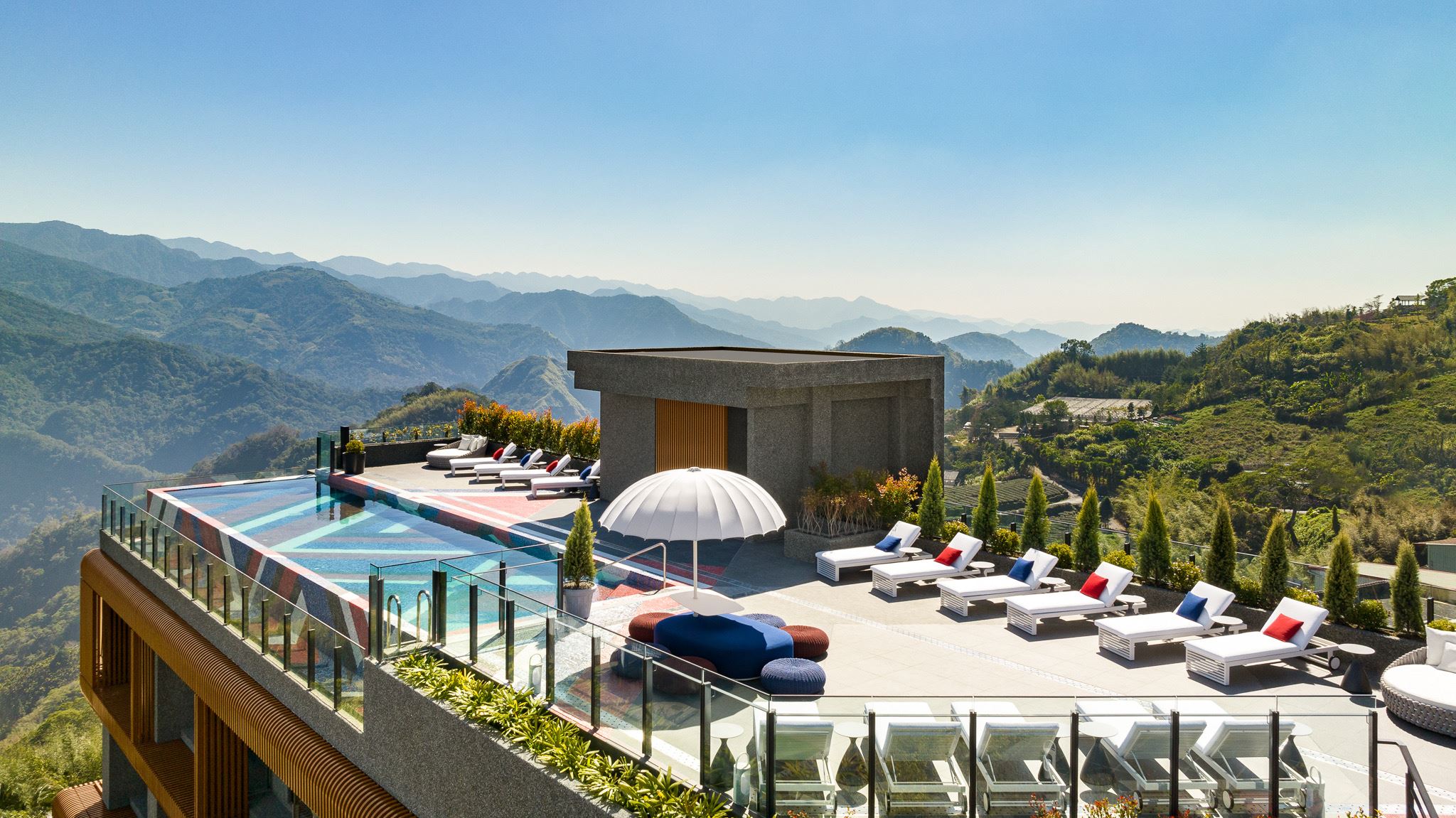 文觀局表示,位於海拔約1300公尺的「阿里山英迪格酒店」,是全台最高的國際精品酒店,建築外觀呼應阿里山森林小火車的意象,室內空間以在地鄰里文化為設計靈感,簡約卻極具質感,清晨可在無邊際水池邊欣賞日出,夜晚則可倚著山風與星光靜靜放鬆。