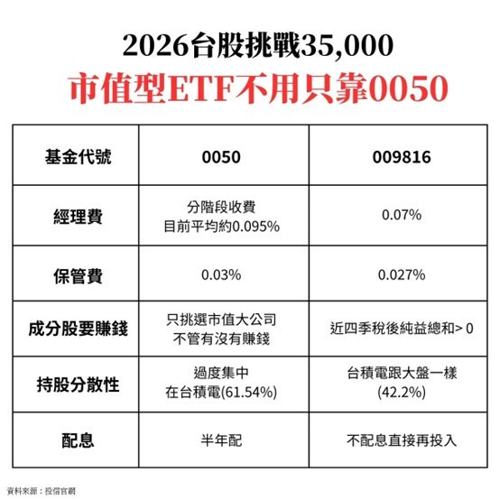 1. 經理費:009816為0.07%,較優。0050採取分階段收費,目前平均約0.095%。
