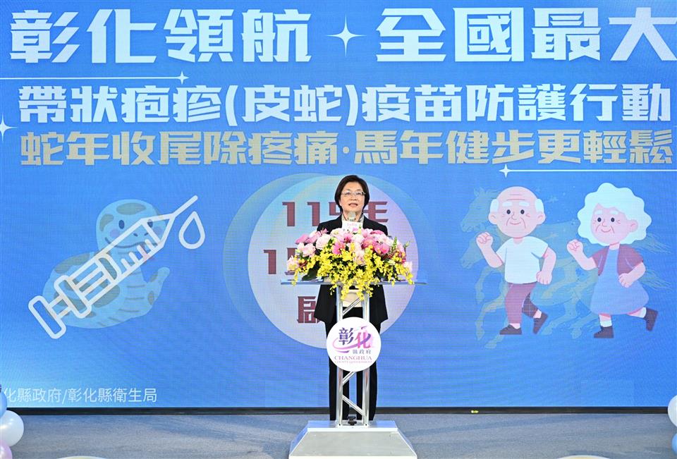 彰化縣衛生局今(31)日上午於縣府1樓中庭舉辦「彰化領航‧全國最大‧帶狀疱疹(皮蛇)疫苗防護行動啟動記者會」,宣布115年1月20日將正式啟動全國規模最大的65歲(含原住民55歲)以上長者帶狀疱疹疫苗接種計畫,彰化縣長王惠美及國家預防接種諮詢委員會(ACIP)召集人兼台灣疫苗推動協會理事長李秉穎等多位貴賓與會,共同見證彰化在高齡防護政策上的重要里程碑。王縣長表示,為提升本縣長者免疫防護力、降低重症與併發症風險,彰化縣自購2萬劑疫苗,提供設籍本縣一年以上1萬名長者施打兩劑完整保護,低收入及中低收入戶長者免費由縣府全額補助;一般長者則自付6,000元,其餘不足部分由縣府補助。115年1月20日起開放長者至衛生所臨櫃預約登記接種,歡迎長輩踴躍參與,縣府團隊與您一同守護健康,為115年幸福彰化開啟嶄新氣象。