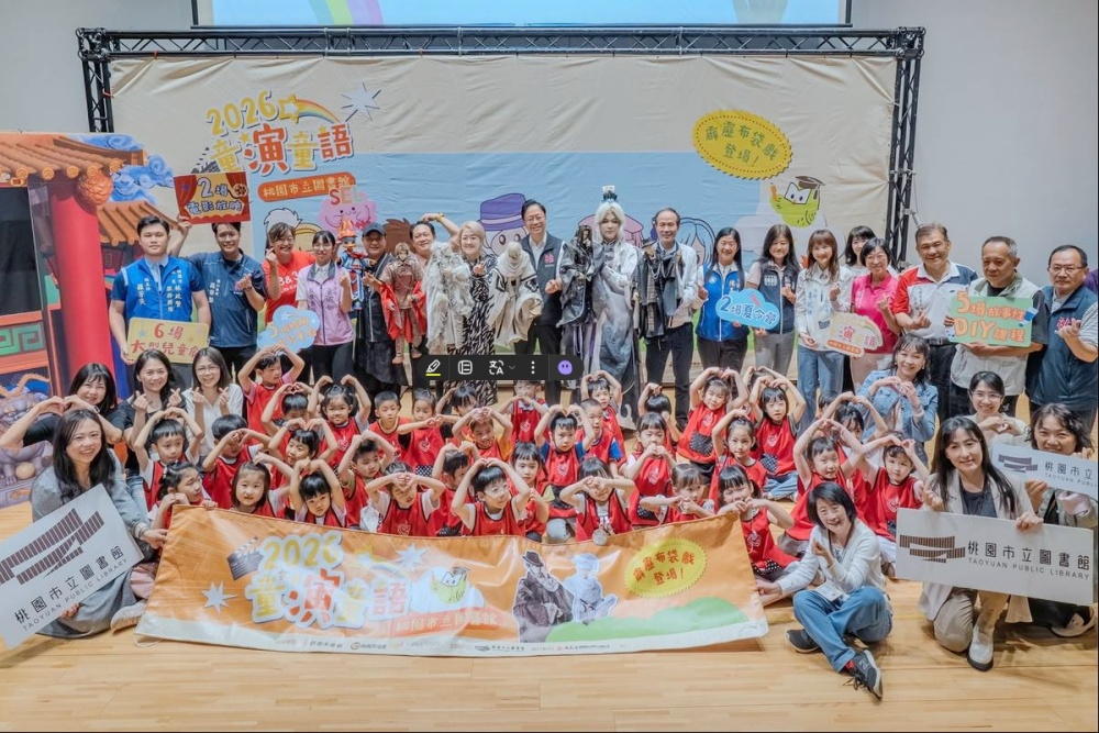 圖:桃園市「童演童語兒童閱讀推廣活動-啟動儀式」大合照。(圖/桃園市立圖書館提供) 【記者張嘉誠/綜合報導】 桃園市長張善政4月14日下午前往桃園市立圖書館總館,出席「童演童語兒童閱讀推廣活動-啟動儀式記者會」時表示,為提升兒童閱讀興趣,市府攜手霹靂國際多媒體,將布袋戲IP轉化為兒童劇形式,自4月26日起至10月17日期間,規劃多場兒童劇、夏令營及手作體驗,透過生動劇情與Q版角色讓閱讀不再侷限於書本,引導孩子主動親近閱讀、打造兒童閱讀新體驗。 圖:桃園市長張善政操作傳統木偶戲與小朋友們同樂。(圖/桃園市立圖書館提供) 張善政市長在市府教育局長劉仲成、桃園市立圖書館長施照輝、桃園區公所副區長邱創正陪同中與會,市議員陳美梅、大霹靂國際整合行銷股份有限公司總監丘昀等均到場參加。 張善政指出,「童演童語」已發展為桃園重要的兒童閱讀品牌,今(115)年透過霹靂布袋戲與「Pili Gili」Q版人物,以鄉土語言及創新轉譯,將傳統偶戲轉化為孩子理解情緒的工具。活動同時融入社會情緒學習(SEL)元素,協助孩子學習情緒表達與人際互動。 張善政也分享,布袋戲是許多人跨世代的共同回憶,從經典角色到現代化的Q版人物均展現本土文化魅力,期盼孩子在觀戲過程中,學習控制情緒,成為情緒的小主人。 圖:桃園市長張善政出席「童演童語兒童閱讀推廣活動-啟動儀式記者會」與小朋友們合影。(圖/桃園市立圖書館提供) 大霹靂國際整合行銷股份有限公司總監丘昀表示,霹靂布袋戲深耕台灣逾 38 年,傳承黃家五代百年的布袋戲底蘊。此次首度與桃園市立圖書館合作,將經典的科幻武打戲轉化為結合 SEL 社會情緒學習概念的兒童劇,規劃11場大小型演出及 DIY 體驗活動,邀請親子在暑假期間一同認識傳統文化,並推薦家長與小朋友踴躍借閱館內典藏的上百片霹靂布袋戲影卷。 桃園市立圖書館表示,系列活動將自4月起於桃園各區陸續展開,其中首場大型兒童劇將於4月26日於龍潭國小登場,由《魔神來襲!校園正義守護戰》揭開序幕。活動當天除精彩演出外,現場亦設有情緒主題闖關攤位、互動體驗及抽獎活動,邀請大小朋友踴躍參與。更多活動詳情請至桃園市立圖書館官網查詢(網址:https://www.typl.gov.tw/zh-tw)。