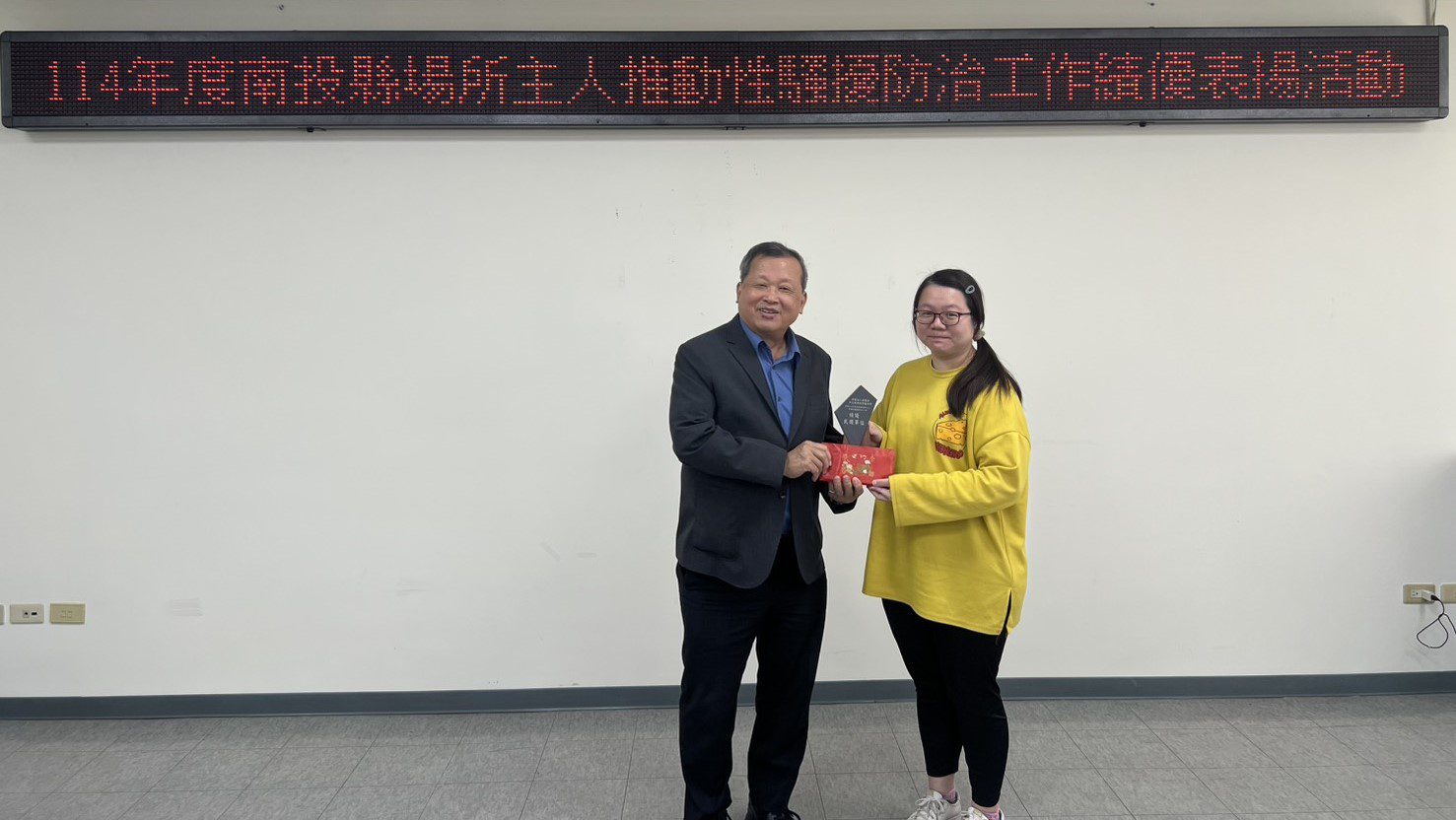 於11月25日辦理「114年度性騷擾防治場所主人表揚活動」,由王副縣長瑞德頒獎,表揚雲品溫泉酒店及財團法人南投縣私立德安啟智教養院,肯定兩家民間單位在推動性騷擾防治及營造安全友善空間方面的卓越成效。
