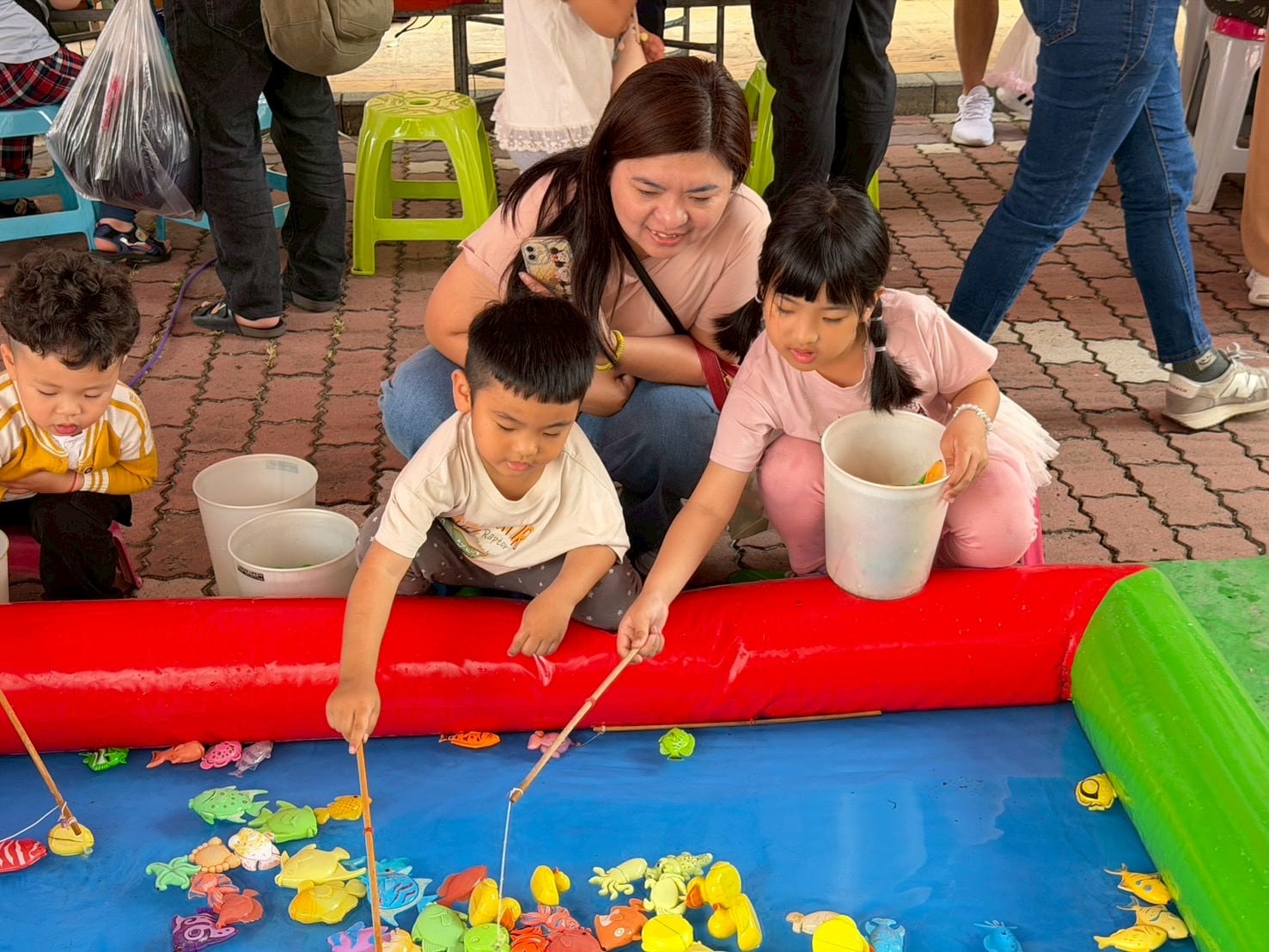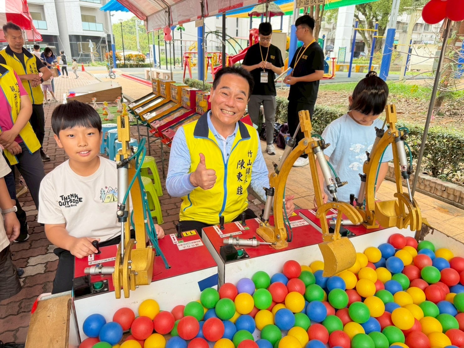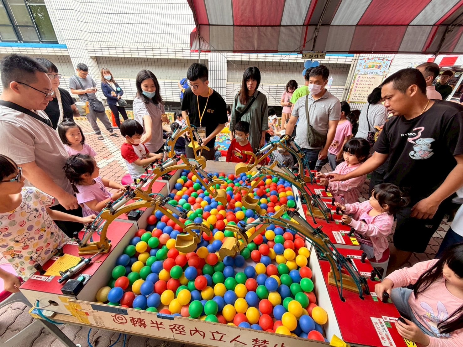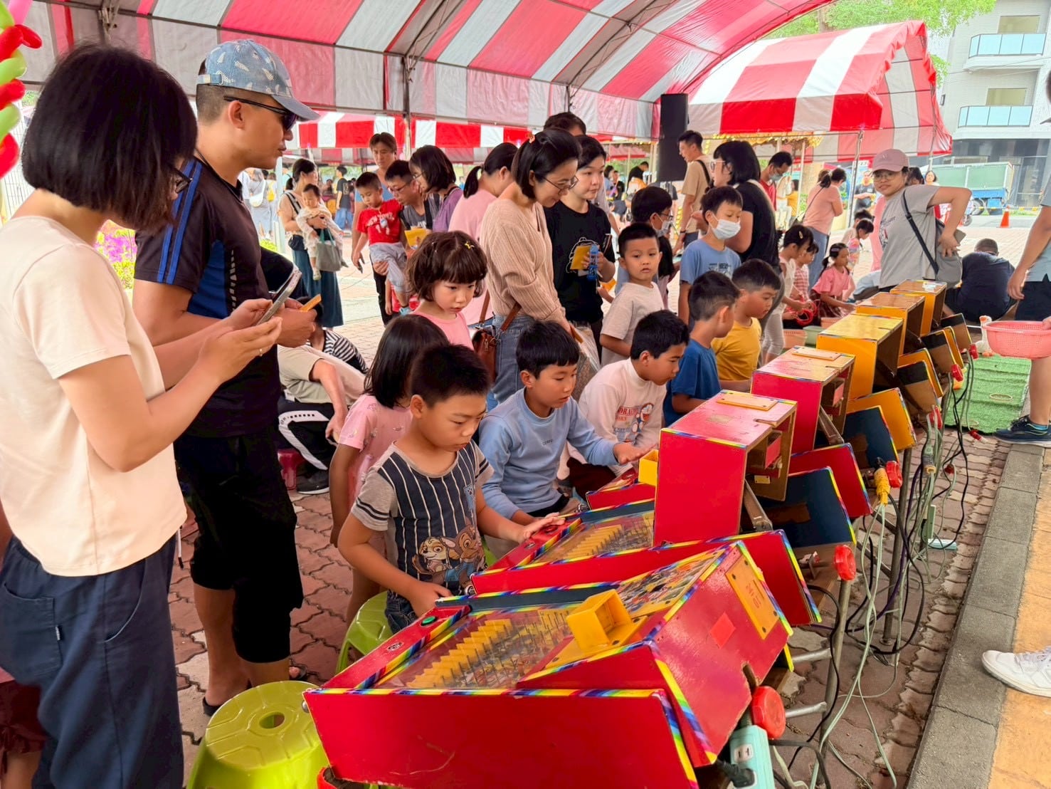 本次活動規劃多項深受孩童喜愛的遊樂設施,包括旋轉木馬、軌道小火車、彈珠檯及套圈圈等遊戲區,讓孩子們盡情體驗多元遊戲,宛如將主題樂園搬到家門口,現場歡笑聲不斷,孩子們玩得不亦樂乎。