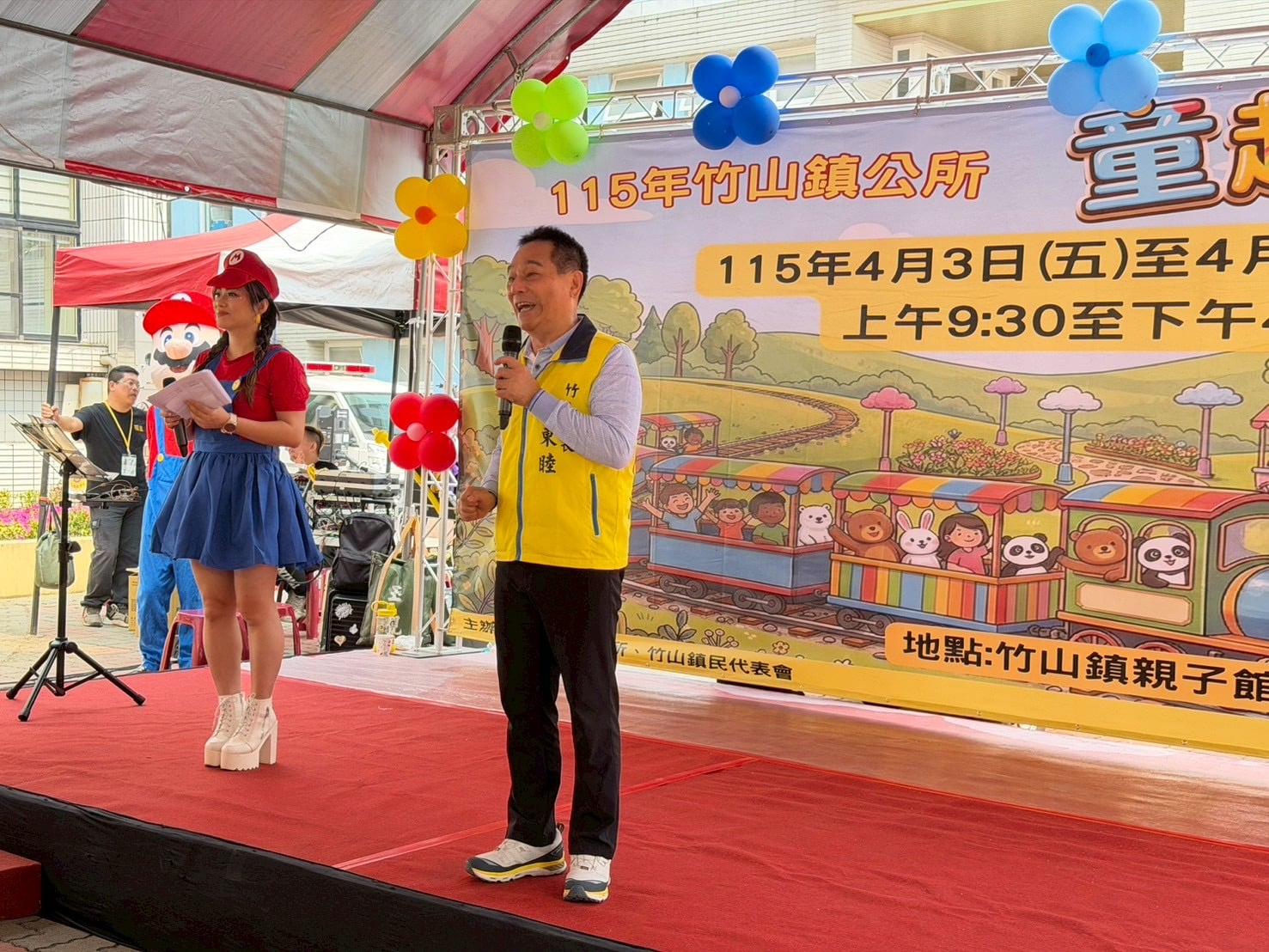 竹山鎮長陳東睦表示,為歡慶四月兒童月,公所規劃多場親子活動,「童趣嘉年華」讓孩子在遊戲中成長、也讓家長在陪伴中累積幸福回憶。鎮長並鼓勵家長可善用親子館資源,透過親子館多樣化的親職教育與共學活動,營造友善的育兒環境,讓每個家庭都能在陪伴與學習中,享受親子共同成長的幸福時光。