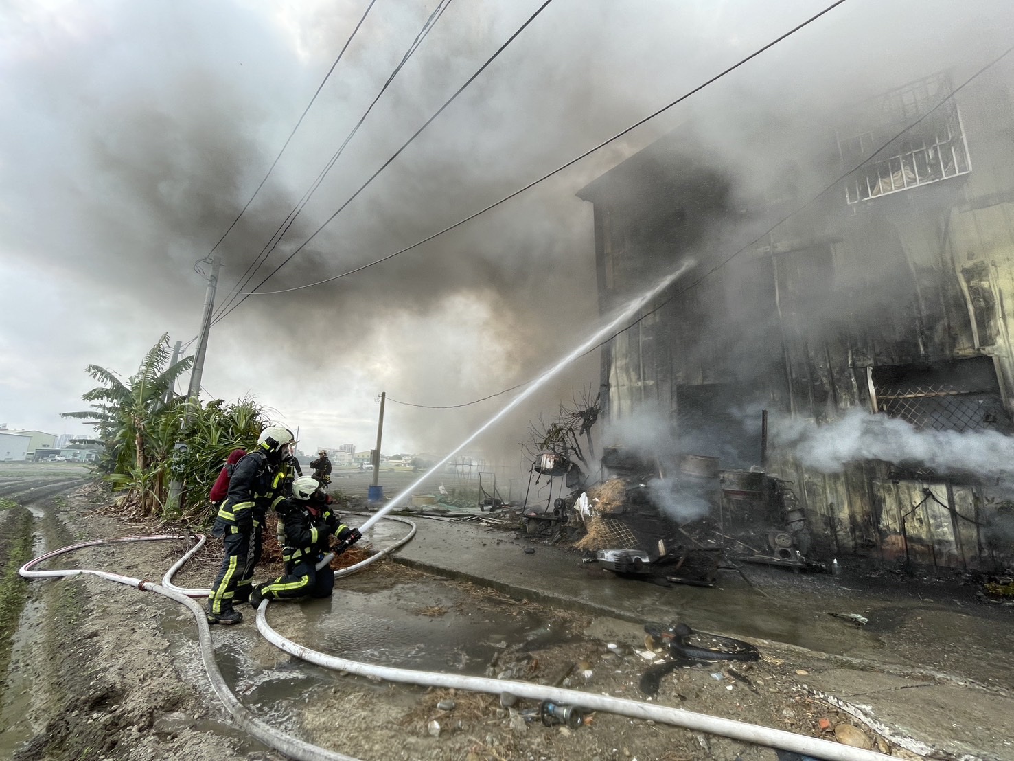 消防隊員到場發現起火工廠為2層樓鐵皮構造,1、2樓有火煙竄出,經灌救火勢於12時16分控制隨即撲滅,無人員傷亡。現場燃燒廠房內木材加工成品、半成品、雜物,以及1輛自小客車及1輛機車,燃燒面積約150平方公尺,財損及起火原因待查。