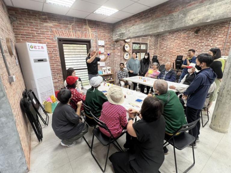▲社工系師生至新城社區帶領銀青共學團體活動。 (圖/記者蔣彤雲攝)