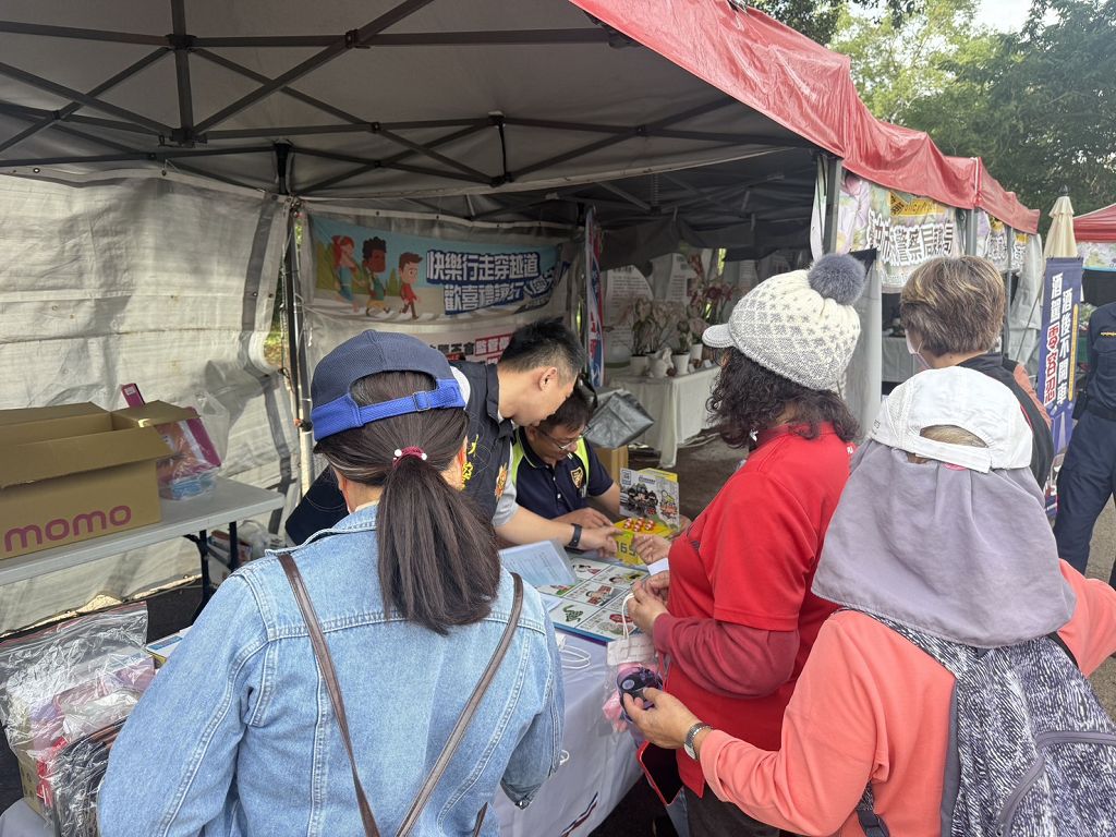 2025新社花海暨臺中國際花毯節於11月8日至30日在臺中熱鬧登場,吸引大批民眾上山賞花。為維持活動期間人潮與車流秩序,臺中市警察局第五分局除在東山路沿線加強疏導,也在會場設置犯罪預防宣導攤位,透過互動遊戲提升民眾識詐能力。