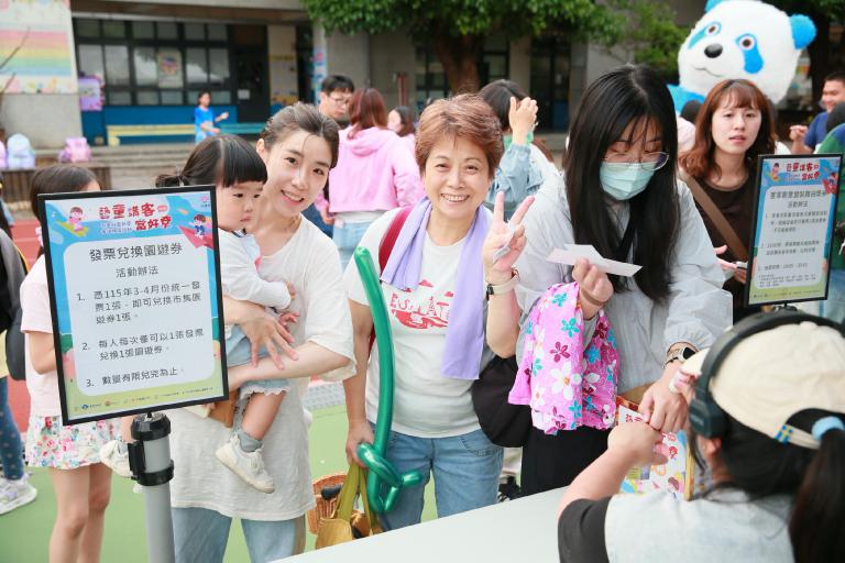 今年的竹東兒童節活動內容豐富多元,兼具好看、好玩、好吃等特色,還有多項好康要獨厚給大小朋友們,昨日下午5時30分起,邀請民眾一同做公益,憑今年3至4月統一發票1張,可兌換市集園遊券1張;凡穿著或配戴客家元素服飾或配件入場者,還可獲得限量抽獎券1張,有機會抽中知名積木玩具。此外,現場亦規劃兩梯次的「客語挑戰」互動闖關活動,成功完成挑戰者可獲得手拋紙飛機1支,民眾反應相當熱烈,小朋友們臉上洋溢著開心的笑容。