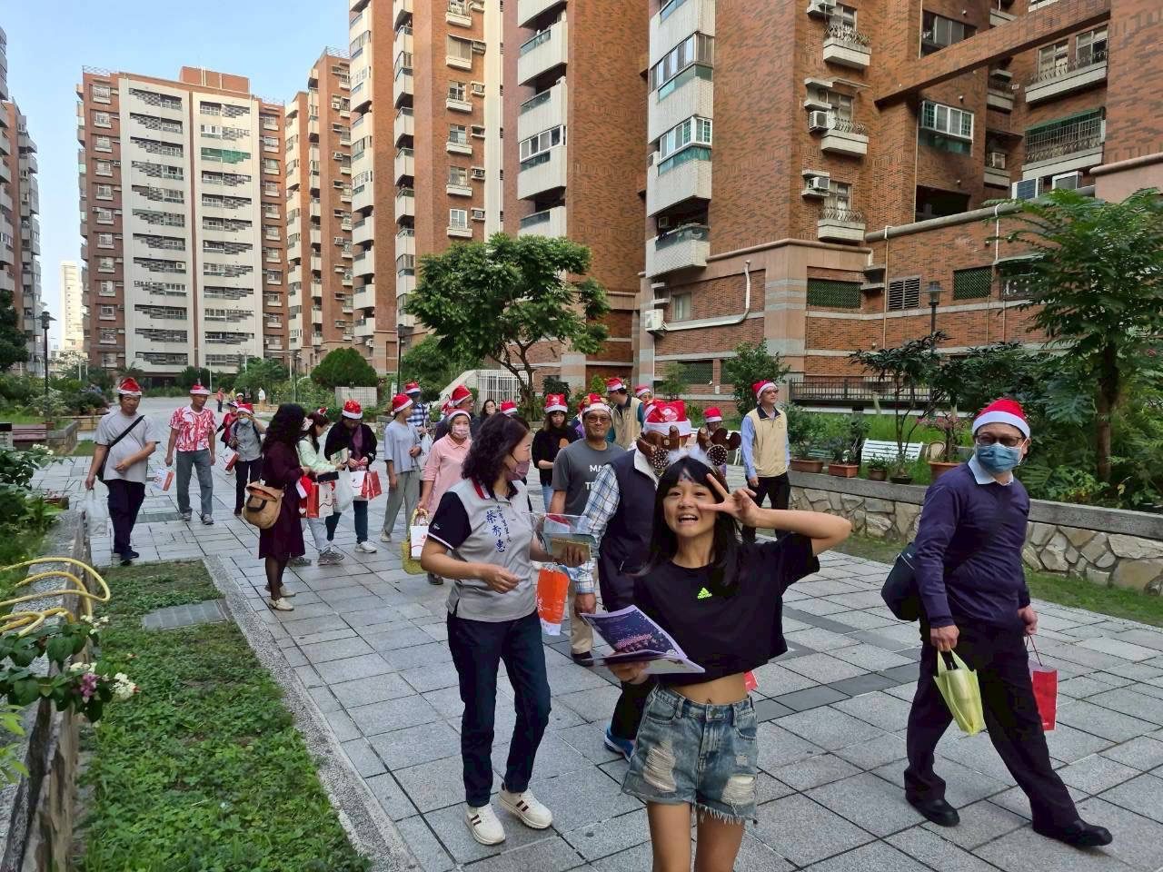 報佳音活動於甲、乙區活動中心開始,參與人員戴上聖誕帽,透過詩歌吟唱與祝福,向社區居民傳遞聖誕佳節的溫馨與歡樂,再走進社區沿途分送聖誕掛飾、小蛋糕、營養品、八寶粥、低糖黑豆漿等小禮物。現場氣氛熱絡而溫馨,社區榮民眷也積極參與,共同吟唱詩歌並分享節慶喜悅。許多長輩表示,這是他們第一次參加這類活動,既溫馨又好玩;部分榮民眷也感謝主辦單位和同工們的用心。
