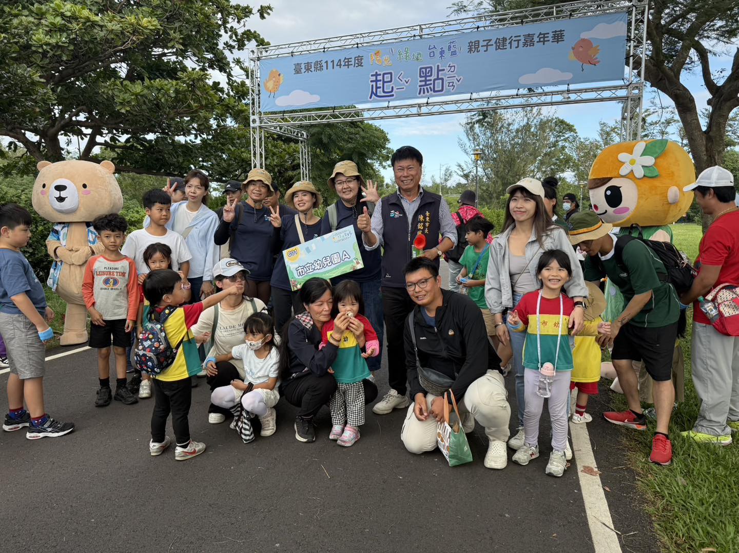 臺東縣政府於今(22)日在臺東森林公園,舉辦「陽光•綠地•台東藍」親子健行嘉年華,吸引50隊家庭、共2200位家長與孩子報名參加,透過健行、暖身操和親子闖關等活動,共度溫馨時光。台東縣政府表示,活動增進家長與孩子情感,讓健康、陪伴、笑聲成為最美好日常。