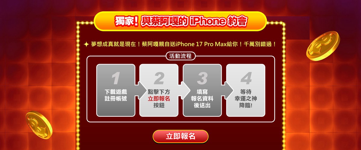 想拿到 iPhone 17、甚至讓蔡阿嘎親自上門送禮嗎?立即下載《金好運》,登入遊戲參加活動,天天都有機會成為下一位「被敲門的幸運兒」!
