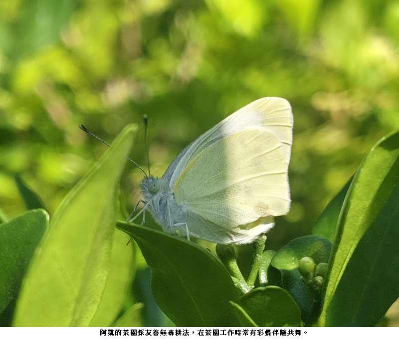 他說,茶出自於茶農之汗水,但喝在消費者之嘴,確保消費者喝到一口好茶的責任,必須由茶農這一端承擔,何況讓蝴蝶飛不是讓子彈飛,在茶園工作還有彩蝶伴舞,這多麼幸福啊。