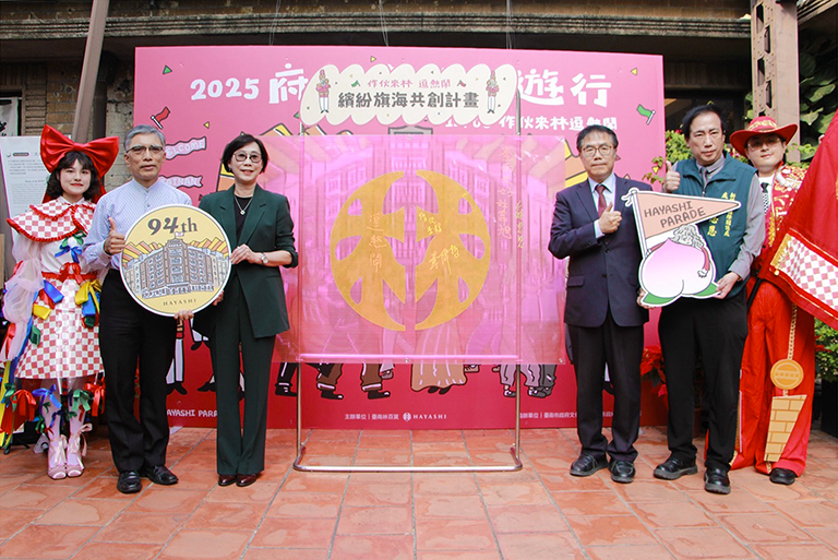 臺南林百貨自 1932 年開幕以來,一直是府城重要的文化象徵。為延續這座城市地標的文化能量,高青時尚股份有限公司接手營運以來,以文化創意與公共參與的方向推動。今年「2025 府城摩登大遊行」,以 94 週年主題《作伙來林 逗熱鬧》展現「與民共創」精神,今(21)日的記者會中,黃偉哲市長與林百貨陳慧姝董事長共同在現場題字,為旗海計畫揭開文化共創的新篇章,也象徵市府、在地企業與文化界攜手,以文化力量串連城市的生活美學與共同記憶,同時也邀請市民與旅人作伙踅府城,迎接暖冬盛典。