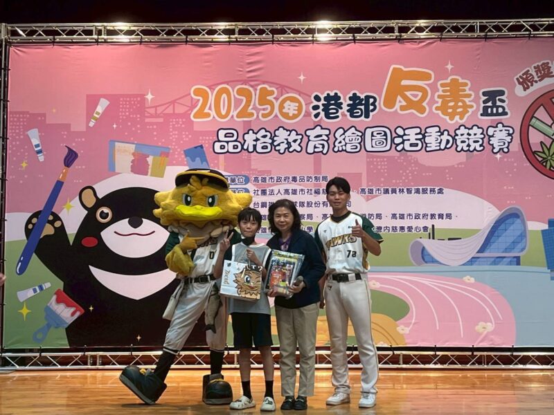 【焦點時報/記者蔡宗憲報導】高雄市政府毒品防制局攜手高雄市社福慈善總會,共同舉辦「2025港都反毒盃品格教育繪圖競賽」,並於暑假期間推出「反毒小畫家宣誓活動」。活動中邀請過去得獎者分享創作理念與參賽心得,吸引全市國小學生踴躍參與,最終共收到3,989件投稿作品。經專業評審評選,選出特優、優等及佳作等優秀作品。昨(23)日於鳳山行政中心大禮堂舉行頒獎典禮,吸引超過300位親子參與。現場安排了反毒宣導、有獎徵答活動,並邀請台鋼雄鷹吉祥物TAKAO及選手陳世嘉到場助陣,氣氛熱鬧溫馨。此外,活動設有保齡球、套圈圈等反毒闖關遊戲,讓孩子在輕鬆的遊戲中學習毒品防制知識。社福慈善總會理事長李昭揚、教育局局長吳立森、議員林智鴻,以及立委許智傑、林岱樺與邱議瑩的團隊均到場支持。