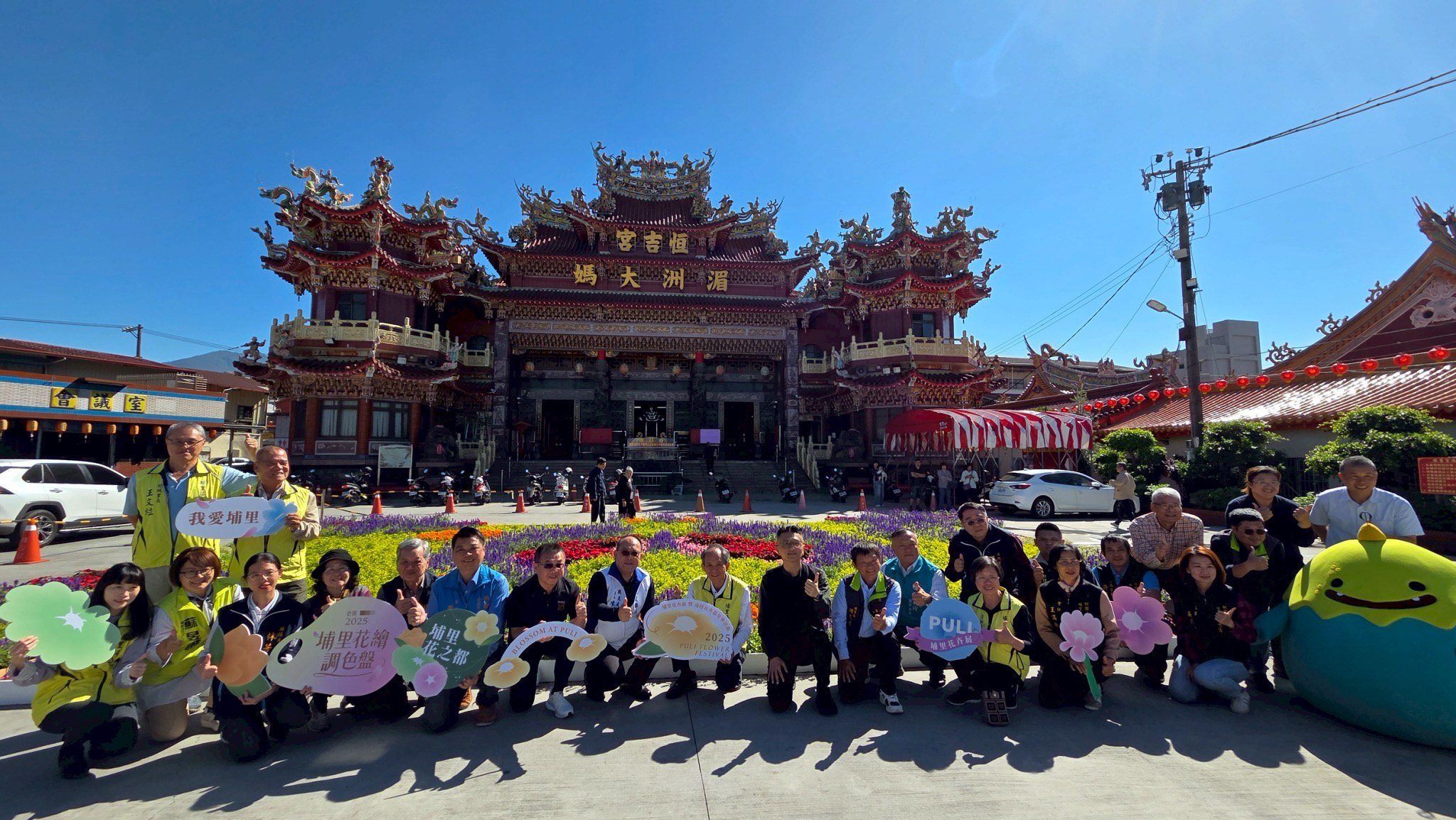 南投年度壓軸花卉盛會「2025埔里花卉展暨南投花卉嘉年華」,今(22日)於埔里信仰中心恒吉宮媽祖廟熱鬧開幕,廣場特別使用近2萬5000盆在地生產多樣花卉,結合埔里山水、蝴蝶及豐富農特產品等意象的大型色彩繽紛花毯,邀請民眾一起走進「花之都」,感受最美的山城風華。