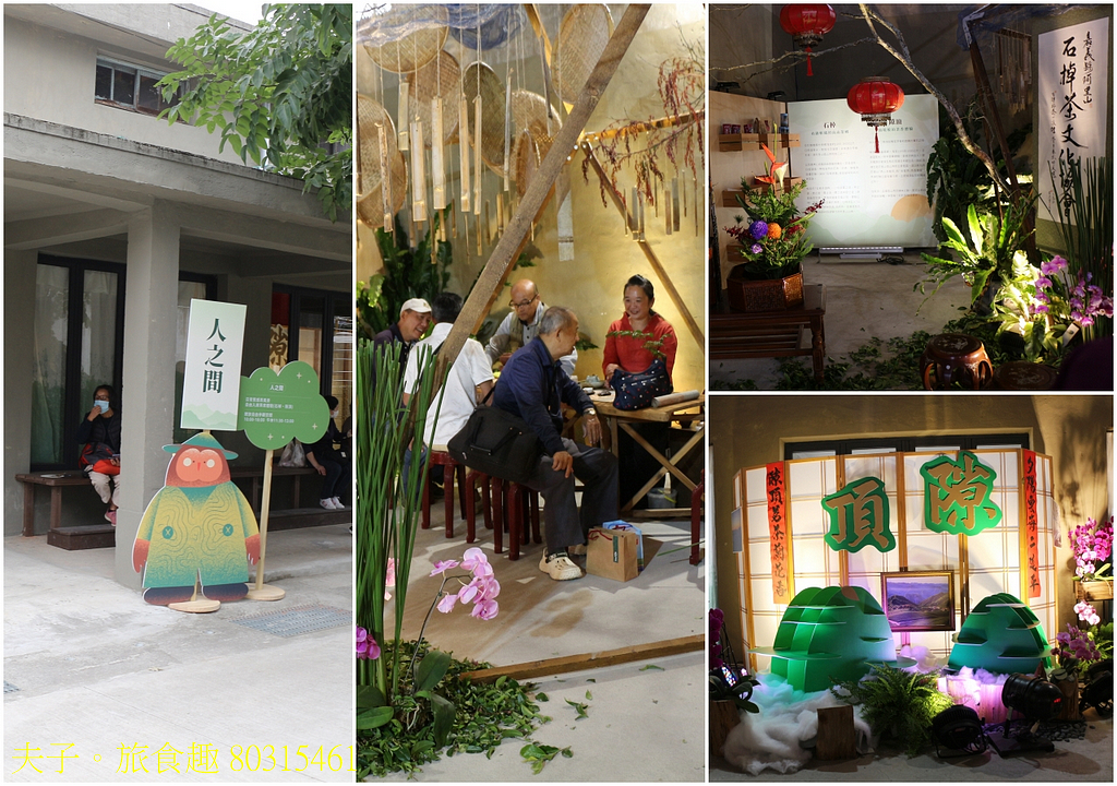 「人之間」茶人故事 × 社區共創,以嘉義人的茶日常為主軸,由太和、瑞里、瑞峰、石棹與隙頂等五大社區的茶人,共同參與布置二個展館,手工建造茶屋、懸掛特色畫布,透過生活風景、質感茶席與社區故事,呈現茶如何在嘉義人的日常中流動,讓民眾感受到最貼近生活的茶文化樣貌。 (照片:「人之間」太和、瑞里、瑞峰展館)