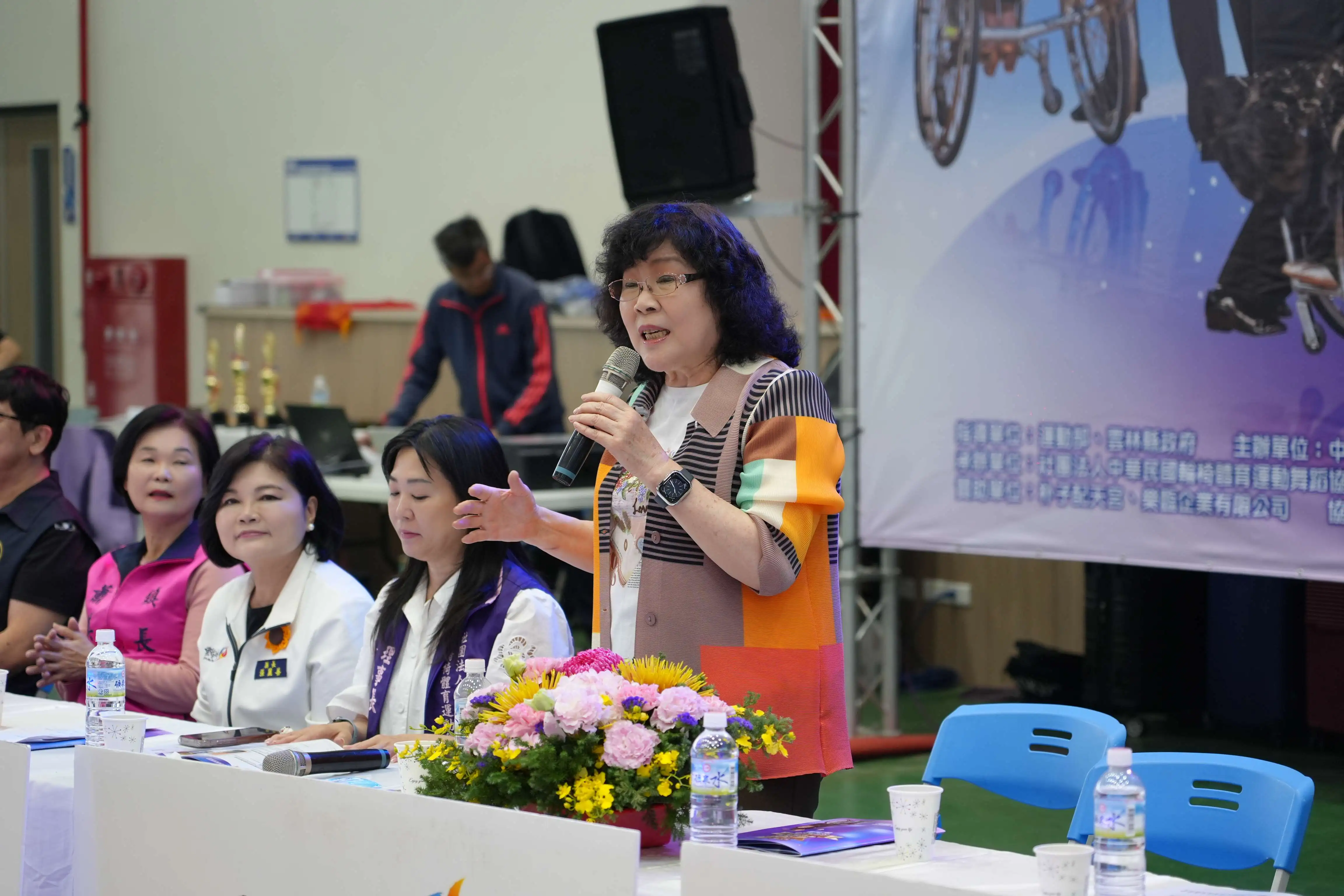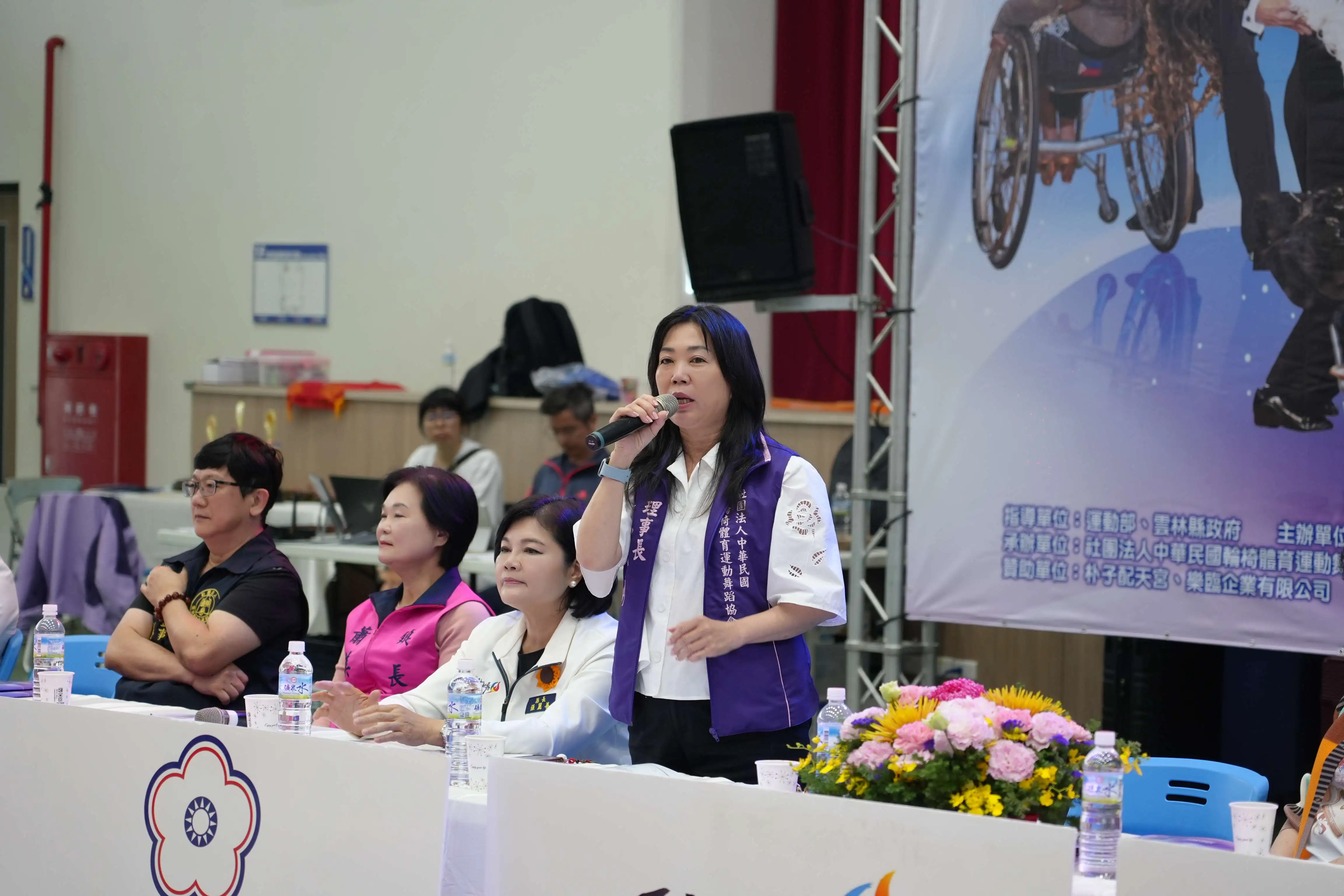 2026全國會長盃身心障礙者輪椅舞蹈錦標賽,於今(22)日上午在雲林縣北港鎮北辰國小運動中心舉行,縣長張麗善、社會處林文志處長、中華帕拉林匹克總會穆閩珠會長、中華民國輪椅體育運動舞蹈協會黃美蘭理事長、蔡秀慧總教練、蕭美文鎮長出席與會,這是身心障礙者體育發展重要大事,參賽人數約100人,提供了身心障礙朋友一個大展身手的舞台。