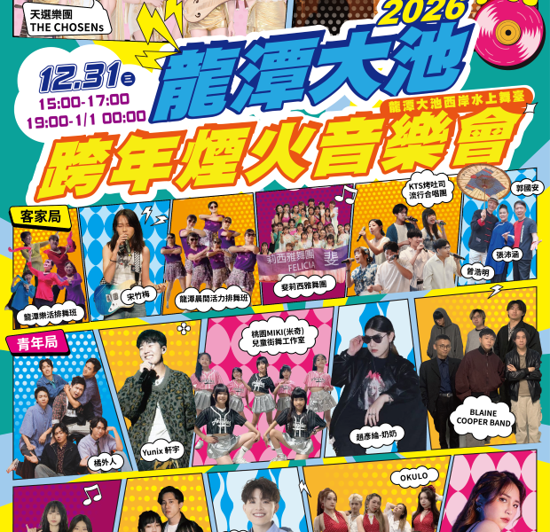 【News586/記者彭慧婉報導】歲末之際,桃園市政府文化局、觀光旅遊局、客家事務局、青年事務局及龍潭區公所將共同於12月31日在龍潭區指標性觀光景點「龍潭大池」,舉辦由系列優秀表演節目串接而成之「2026龍潭大池跨年煙火音樂會」。活動將於倒數迎新時刻施放長達270秒的璀璨煙火,點亮龍潭夜空,為遊客獻上壯麗絢爛的視覺饗宴,熱鬧迎接嶄新的一年。同時,民眾亦可藉由跨年晚會之際夜遊龍潭,體驗夜間景觀所呈現的獨特聲光魅力。