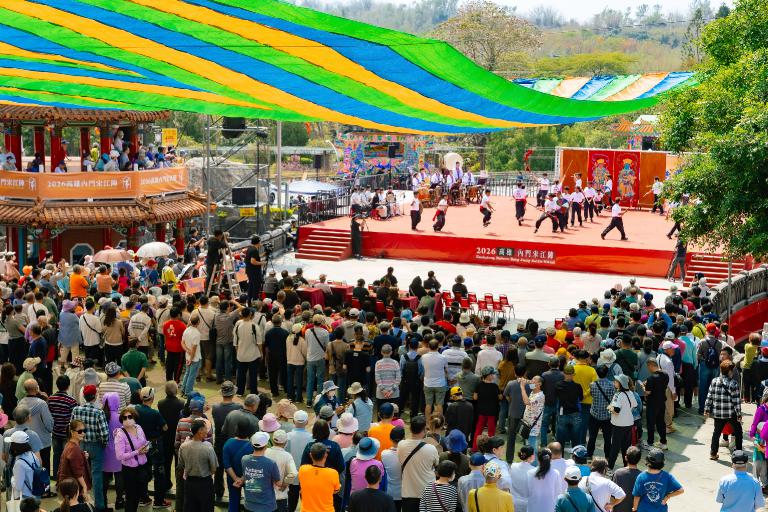 2026「全國創意宋江陣頭大賽」3月28、29日連續兩天在內門紫竹寺舉行初賽,吸引全臺共11支隊伍報名角逐冠軍寶座。各參賽隊伍成員涵蓋各年齡層,包括國小生、大學生,也有社會青年和銀髮長輩;厚實的武術基底結合創意與表演藝術,在場喝彩掌聲不斷。歷經兩天激烈初賽,入圍決賽前七強隊伍(依出場順序)——「鳳武薪傳—西螺鳳山館」、「國立臺南大學」、「龍華科技大學」、「實踐大學高雄校區」、「宗興武藝」、「敬天愛人護鄉里」、「豫章武藝-武藝陣」,將一同角逐最高榮譽冠軍與80萬元獎金。觀光局長高閔琳表示,全國創意宋江陣頭大賽下週六(4/4)舉行決賽,歡迎大家一起來內門紫竹寺參香祈福、為參賽隊伍加油,順遊東高九區度過歡樂連假。