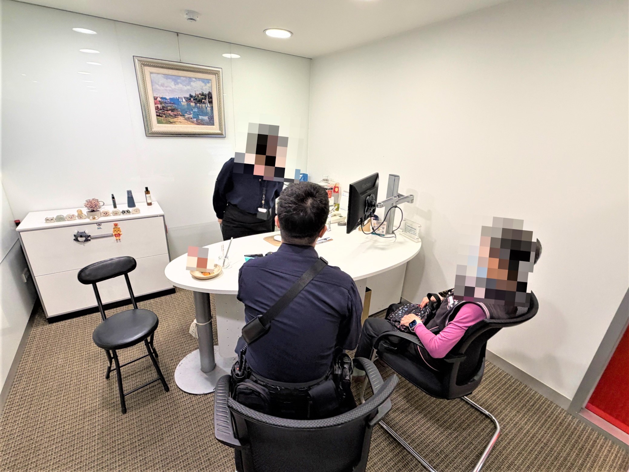 經到場關懷詢問得知為77歲陳姓婦人,陳婦面對警方提問時,神情慌張面露難色,無法正確說明提領的原因,陳婦表示要提領現金是要提供給女兒修繕房屋,惟陳婦一直無法提供相關對話紀錄及證明,亦說不清楚具體的整修內容,加上無法撥打電話給女兒確認,員警為了防範遭遇詐騙情事,只好持續關懷深問,希望陳婦放下戒心。
