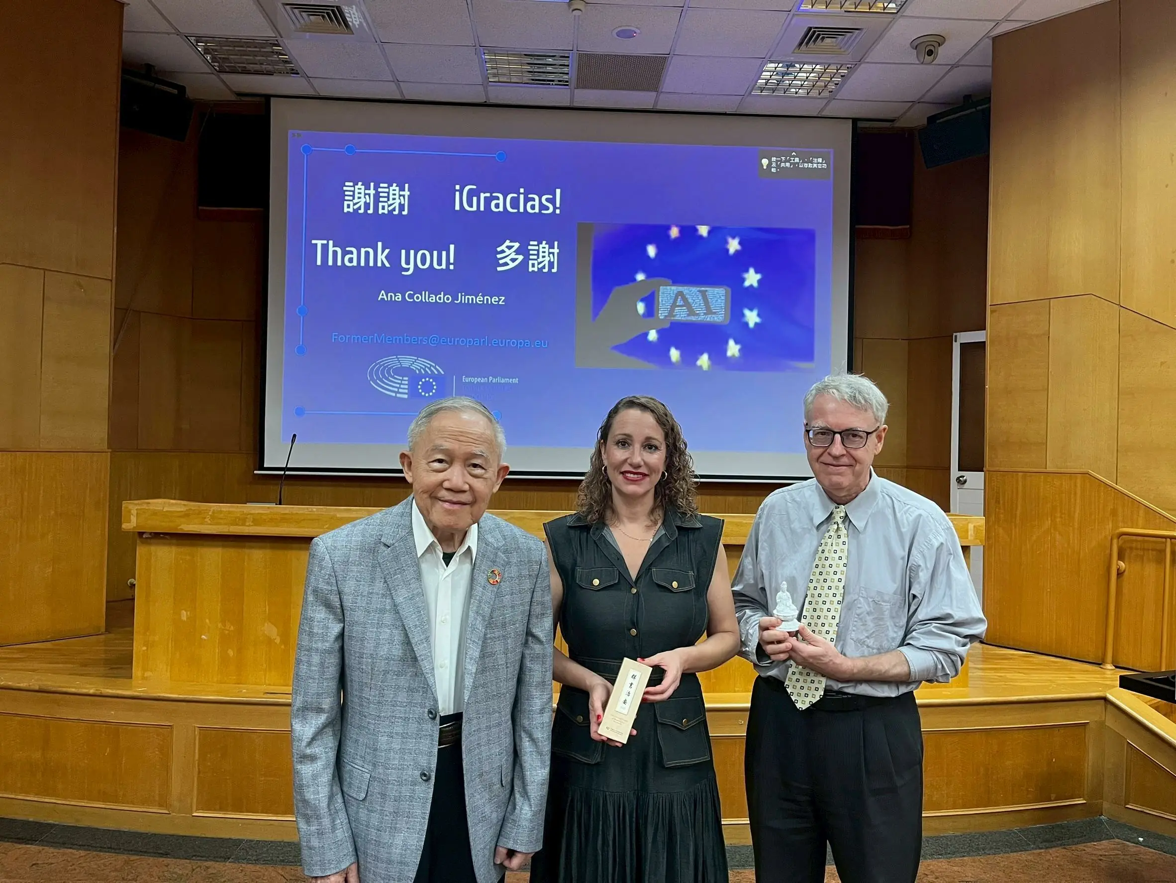在專題演講中,Collado 深入解析歐盟人工智慧策略布局,並聚焦於最新制定的《歐盟人工智慧法案》(EU AI Act)。她指出,歐盟 27 個成員國正透過立法規範 AI 系統的倫理與透明性,以確保創新與人權並行。講座最後的問答環節互動熱烈,顯示台灣學界對歐盟AI治理模式及其對全球創新生態的影響高度關注。