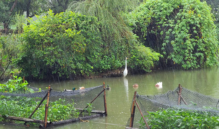 漫步在濕地中,記協成員親見紅冠水雞在水草間輕快覓食、夜鷺安靜地停在枝頭,而一隻隻大白鷺在陽光下拍動翅膀,以優雅姿態掠過水面。清澈的埤塘水域中,小魚穿梭、烏龜曬著日光,台灣萍蓬草與荷葉在水面擺動,每一幕都彷彿大自然的生態插畫。從濕地平台、高架涼亭到親水護岸,不同角度呈現出埤塘的深度美感,也讓參與者對濕地保育的重要性有了更具體的感受。