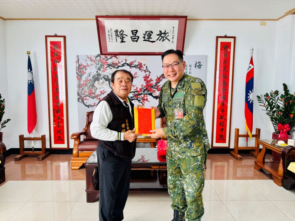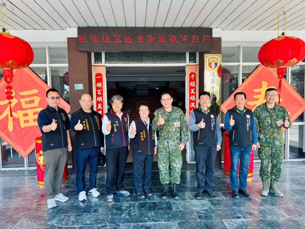 為表達對國軍官兵長年堅守崗位、戮力戰備的感謝之意,台南市佳里區金唐殿管理委員會敬軍團,昨(11)日由主任委員黃維明帶隊,在台南市軍人服務站站長劉可雲陪同下,前往台南市官田營區的陸軍第二○三旅實施敬軍慰問,在春節前夕向官兵致上誠摯關懷。