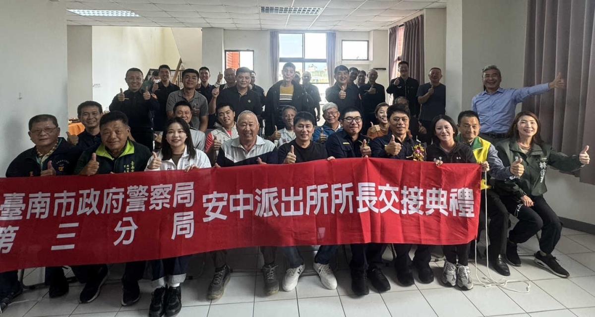 記者尤華恩/台南報導 臺南市政府警察局第三分局於16日舉辦安中派出所所長交接布達典禮,由分局長陳盈菖親自監交,新任安中派出所所長沈昱騰正式就任,儀式簡單隆重,交接過程順利圓滿。