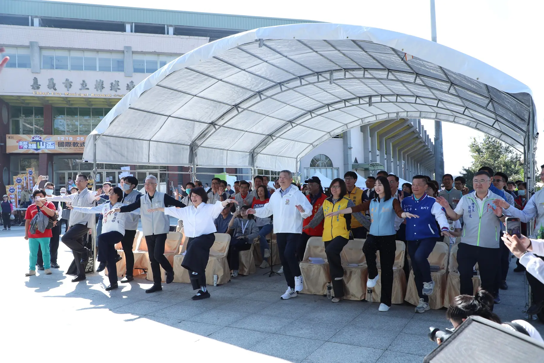 (記者 邱嘉琪 嘉義報導)「114年度十大旗艦計畫教育新世代成果發表會」17日上午於嘉義市立棒球場前廣場登場,嘉義市長黃敏惠出席並與學生一同跳健康操,展現城市運動活力;活動以「運動是嘉義市的城市DNA」為主題,集結學校、運動產業與民間團體,透過體育展演、成果影片及互動攤位,呈現嘉義市推動教育新世代與運動城市的豐碩成果。