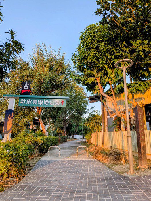 陳局長指出,豐原「社皮美樂地公園」分為三階段開闢及優化工程,第一、二期共投入約1,500萬元,第一期將原公墓綠美化轉型為公園空間,第二期打造豐原首座寵物專區,廣受居民好評;由於園區呈狹長形,入口辨識度不高,經地方建議後,市府推動第三期工程,投入130萬元辦理入口意象優化工程,使公園門面更具特色、更加親切。