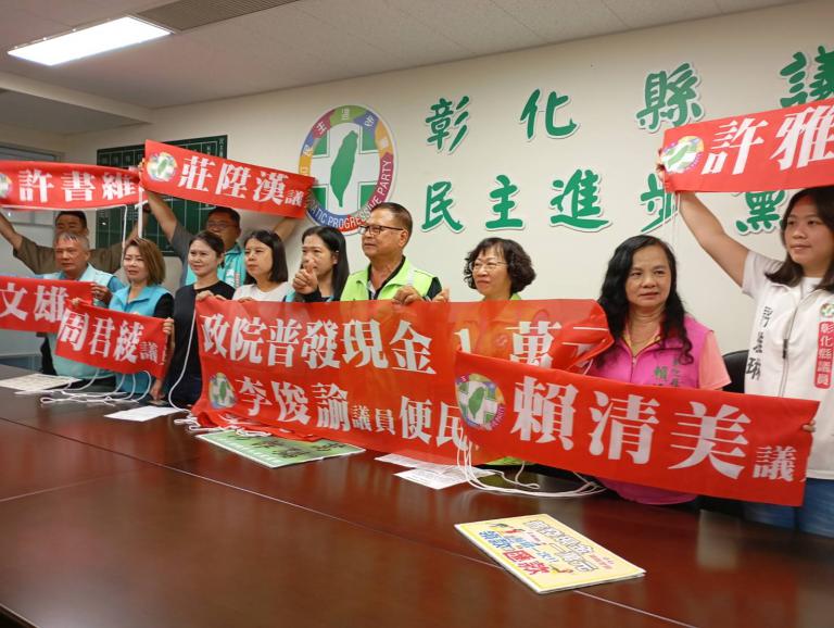 ▲普發1萬元的惠民政策成為詐騙集團眼中的「大餅」,彰化縣議會民進黨黨團11日召開「領1萬防詐騙」記者會,宣布為杜絕詐騙、服務鄉親,黨團所屬議員服務處將全面設立「民眾服務站」,提供鄉親申領協助與政策疑問解答服務。(圖╱記者孔亮云攝)