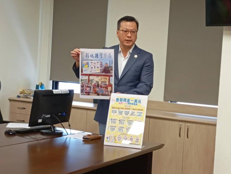 針對行政院發放1萬元的惠民政策,雖引發基層熱烈關注,卻也成為詐騙集團眼中的「大餅」。彰化縣議會民進黨黨團今(11)日召開「領1萬防詐騙」記者會,召集人李俊諭表示,為杜絕詐騙、服務鄉親,黨團所屬議員服務處將全面設立「民眾服務站」,提供鄉親申領協助與政策疑問解答服務。