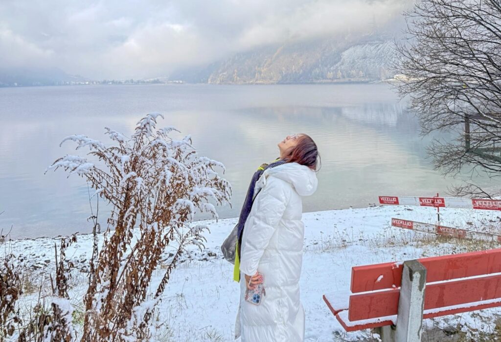 這趟旅行本來只打算賞深秋楓紅,結果歐洲突然寒流來襲,她此生第二度遇見名符其實的瑞雪。「雪地會把聲音全部吃掉,那一刻世界變超安靜,像白色冥想。」她在阿爾卑斯山的雪地裡被自然徹底洗版,直呼「心被按下 reset」。