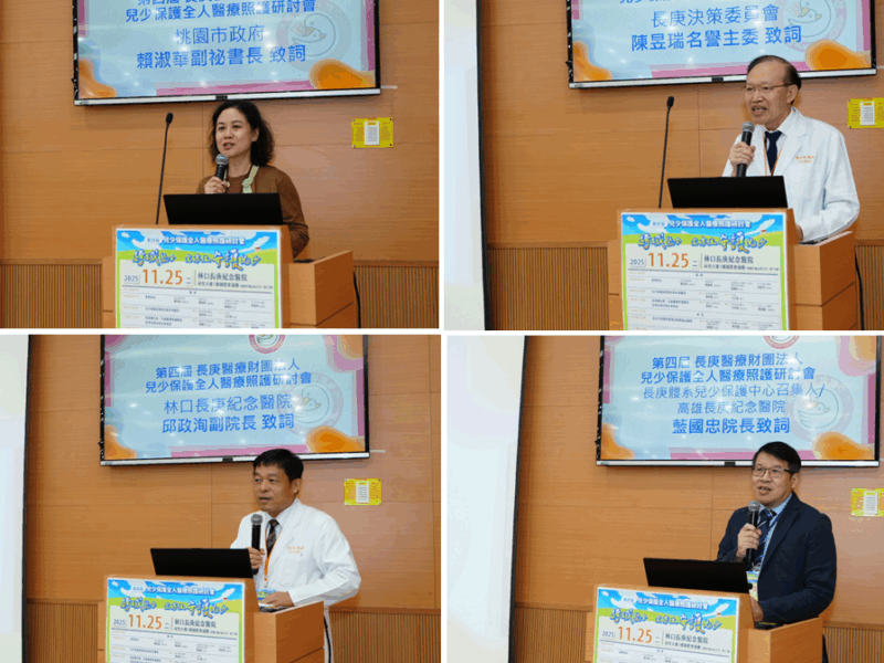 桃園市政府副秘書長賴淑華代表張善政市長出席,並肯定長庚醫療體系與跨領域團隊長期支持桃市府兒少保護工作。賴副秘書長指出,桃園市近期於少年服務工作導入科技分析工具,結合教育、社政、警政、司法及醫療端之合作,獲得 「首爾智慧城市獎」,象徵桃園在智慧城市與社會安全領域的整合能力獲得國際認可。賴副秘書長更強調社會局透過跨領域合作,可以更精準掌握兒少可能面臨風險,她感謝長庚醫療團隊長期不分日夜給予桃市府兒少保護個案支持,並期盼透過本次研討會讓安全網更加完善。
